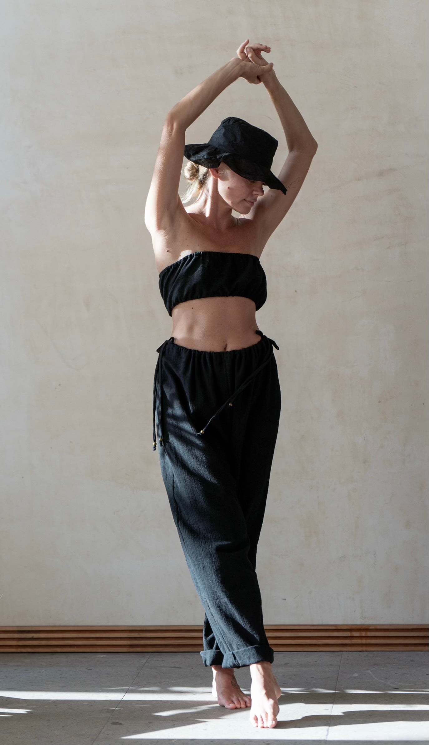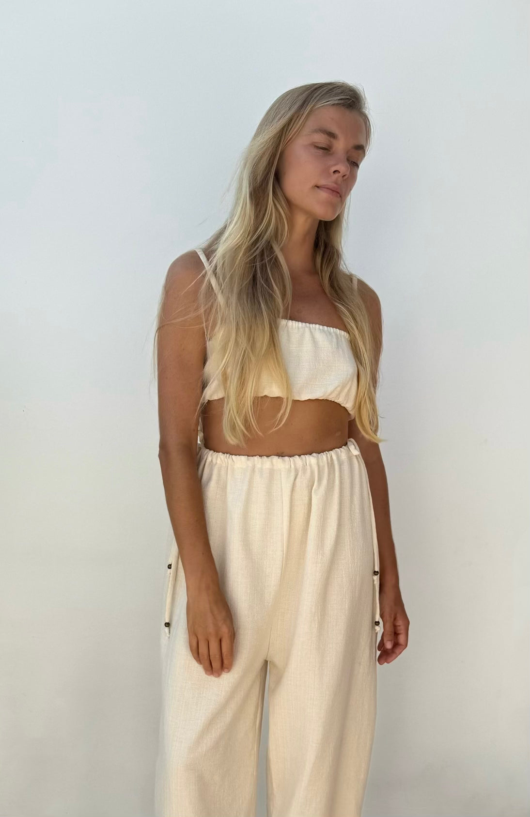 Pantalón de corte amplio, confeccionado en algodón suave, que ofrece una silueta relajada y funcional.