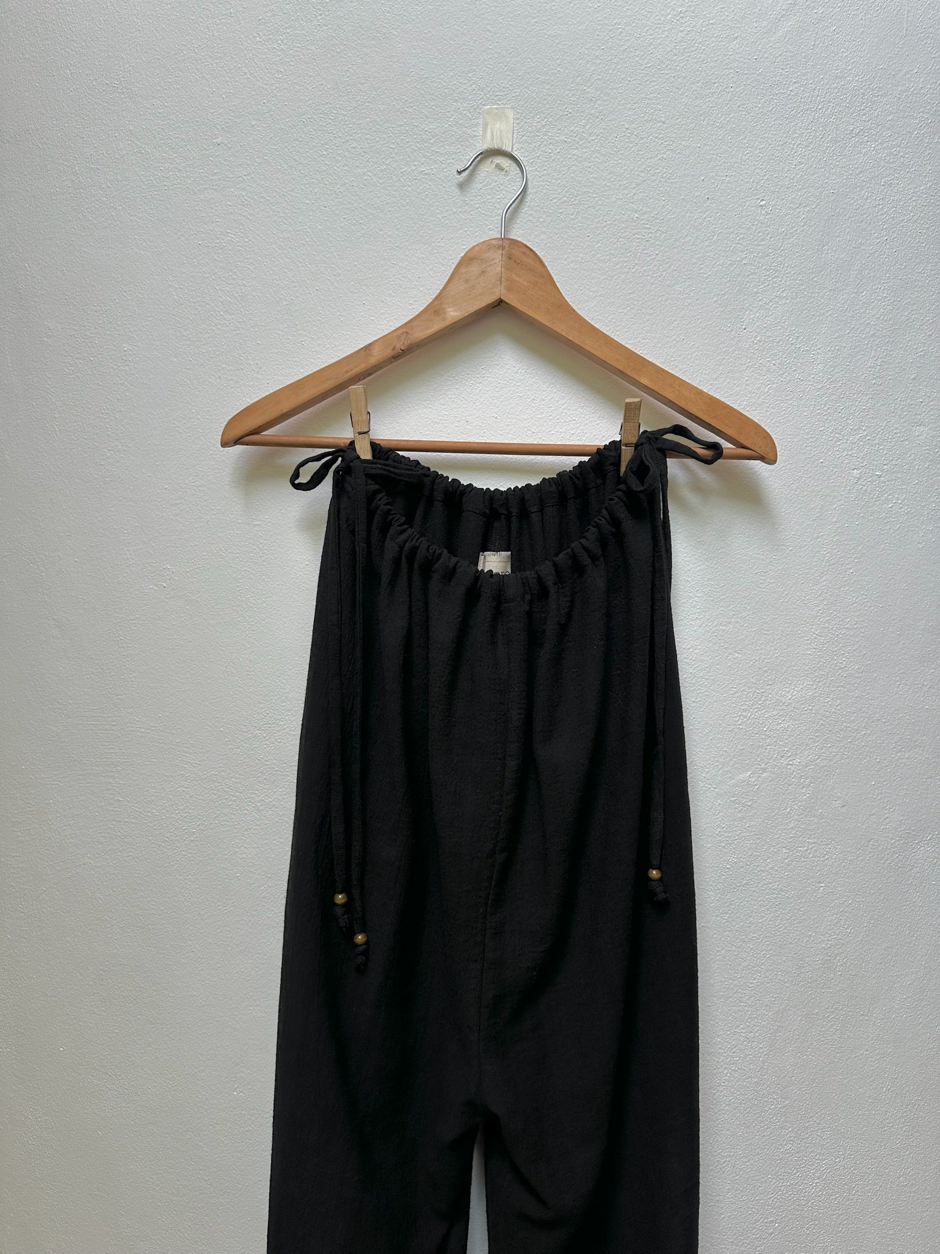 Cuenta con bolsas laterales y un amarre regulable en la cintura para mayor comodidad. Una prenda versátil, hecha a mano, pensada para acompañarte con sencillez y estilo.