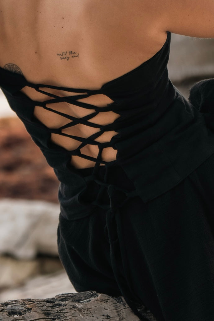 El largo a la cintura lo hace ideal para usar con pantalones de tiro alto o bajo, faldas o incluso como prenda base para looks en capas. Cuenta con tirantes ajustables en la parte trasera para un calce personalizado.